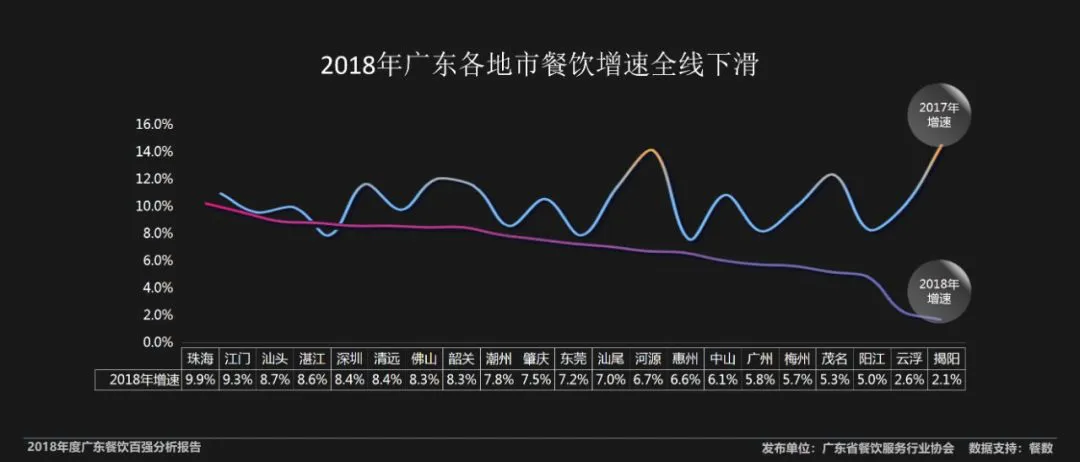2018年广东各地市餐饮增速全线下滑