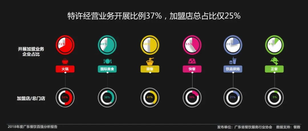 特许经营业务开展比例37%,加盟店总占比仅25%