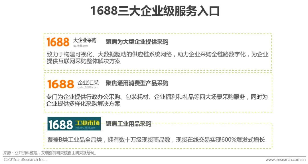 1688企业采购平台打造三大企业级服务入口,包括1688大企业采购平台、企业汇采与1688工业品市场