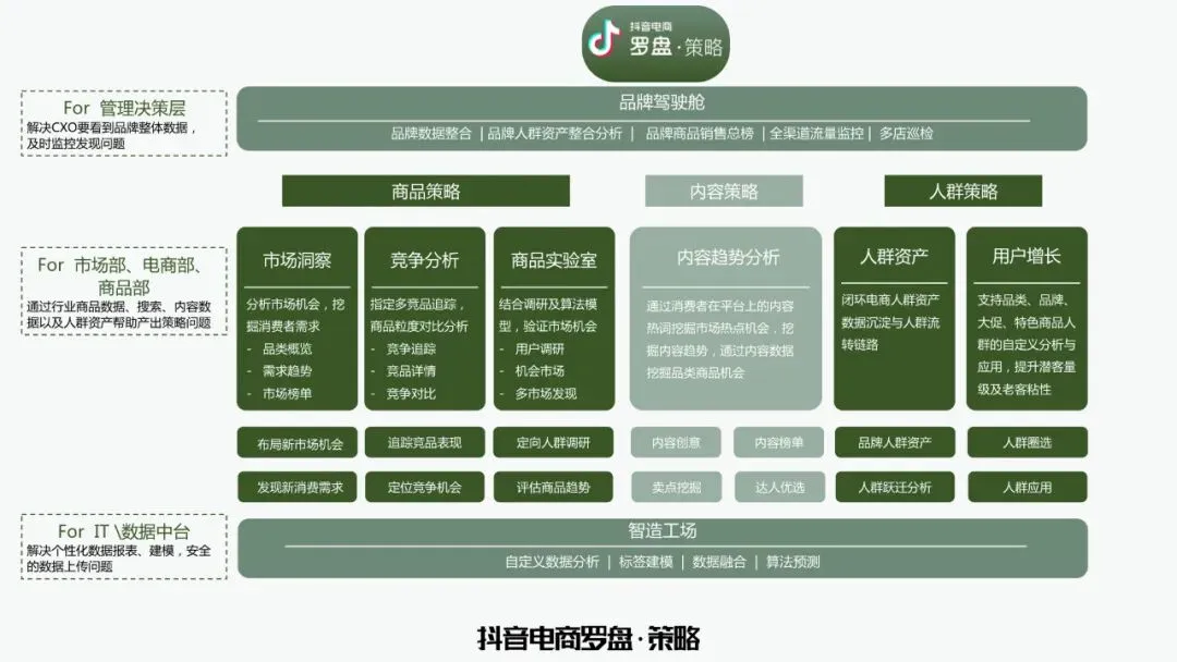 电商罗盘是抖音电商旗下的数据产品,是品牌践行FACT➕经营策略的绝佳数据工具,为品牌提供从策略到经营的产品+服务解决方案。
