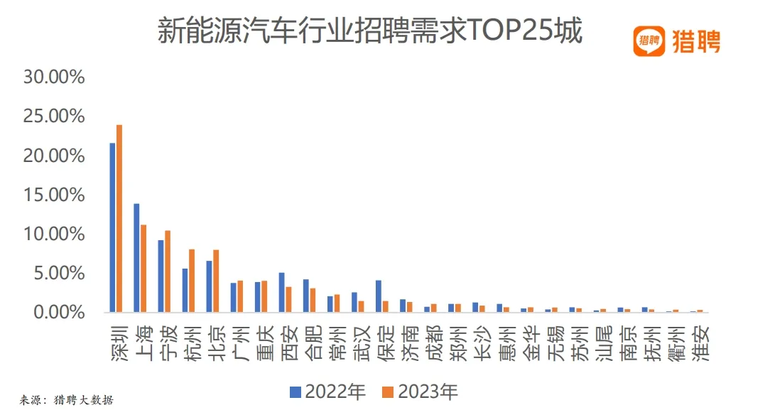 支持。招聘热点集中在新能源发展迅速的城市,如深圳、合肥、西安、上海、