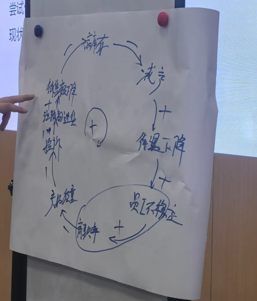 现场的学员分享了他们企业面临的困境:连续几年的销量下滑,企业陷入了一个几乎无法自拔的恶性循环。