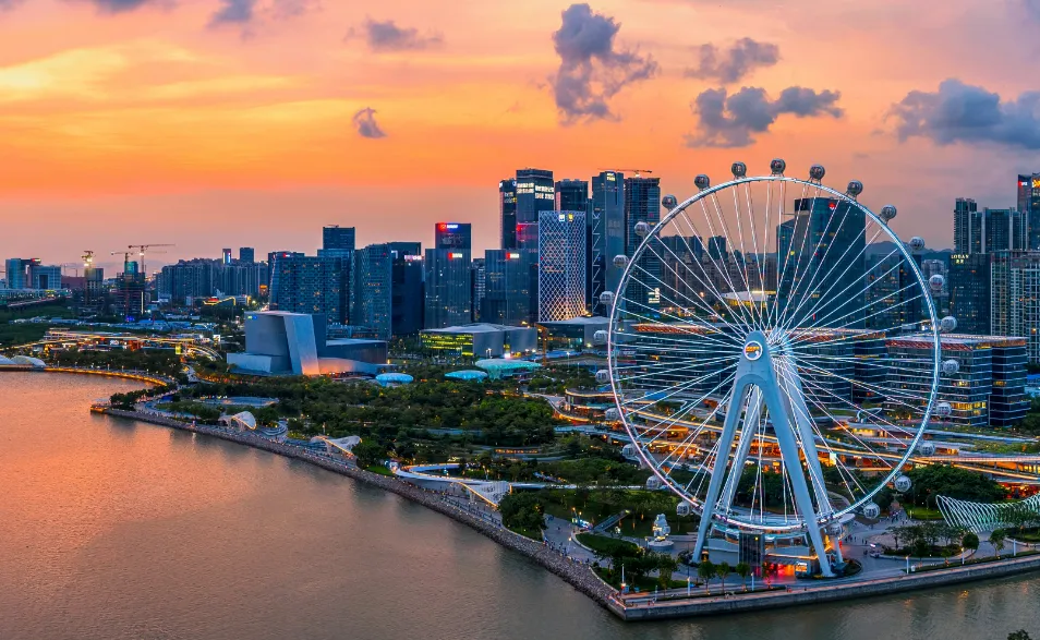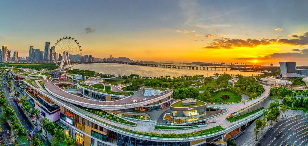 于2020年8月开业,是深圳西部海岸线文旅创新地标、滨海城市公园综合体,总建面38万㎡,其将海景、公园、生态与商业融为一体,其景观设计荣获景观界“奥斯卡”2017年度美国ASLA景观规划设计类大奖。覆盖了东岸西岸滨海体验式商业街区、“湾区之光”摩天轮、海滨文化公园、深圳滨海演艺中心、JW万豪酒店等多元业态。其中,东岸西岸滨海体验式商业街区总商业面积约到12万㎡,是深圳首个亲海体验式商业街区。荣获2022ArchDaily中国年度建筑大奖冠军,位列2022年第二季度中国文旅商综合体欢乐指数百强榜第一名。2023年入选首批深圳市级示范特色商圈。