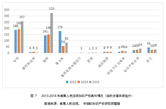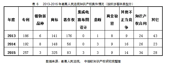 5、中国法院网,2013-2015年《最高人民法院知识产权案件年度报告》