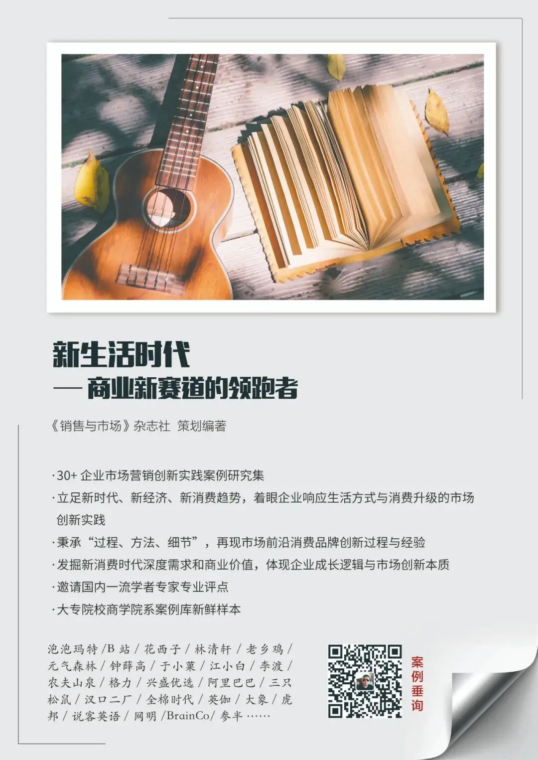 26年来,《销售与市场》始终紧跟市场变化,引领营销发展方向。今年蓄力再发、适时而动,策划“新生活时代”的企业创新案例集结版《新生活时代:商业新赛道的领跑者》。旨在抓住千载难逢、百年之未有大变局下催生的战略性机会,联合中国市场营销进步势力与蓬勃向上的创新力量,共创共享中国市场经济美好生态,明确指引中国市场营销创新方向、乃至贡献世界市场!