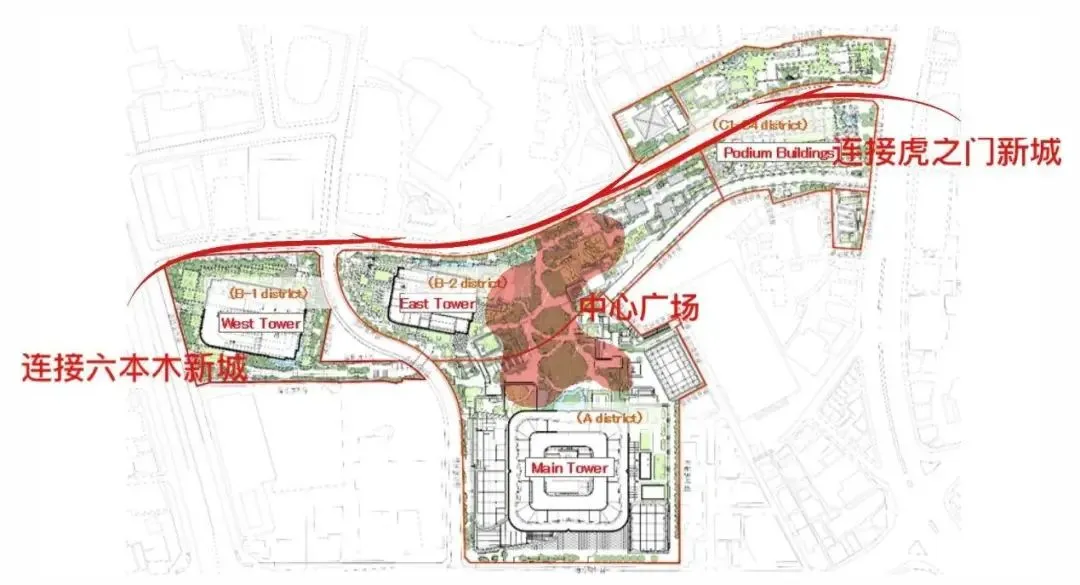 从规划格局上看,Toranomon-Azabudai 处于六本木之丘和虎之门新城之间。