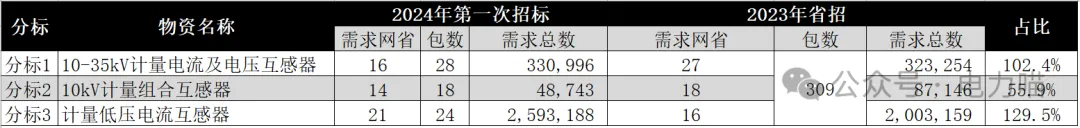 据统计,本次招标所有类型互感器总需求数量为2,972,927只,比较2023年度各省省招项目累计需求量(不含流标数量),整体需求量增长23.2%。