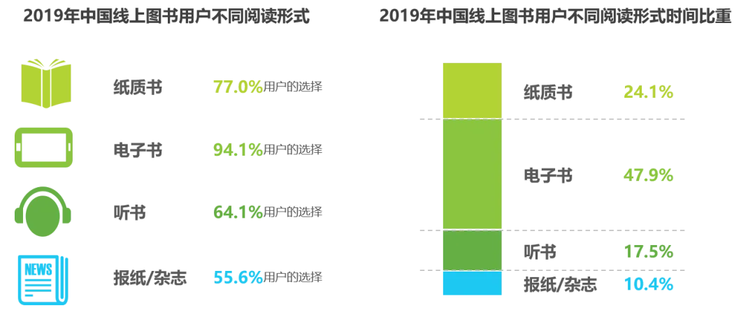 调研结果显示,从不同阅读形式的时间比重来看,用户看电子书的时间占比已达到47.9%,纸质阅读为24.1%,听书时间占17.5%,阅读报纸杂志时间占10.4%。
