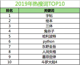从京东图书2019年搜索热词来看,用户更加偏好精准搜索。热搜词TOP10中,6个是具体书名,python是具体名词,东野圭吾是具体作者,只有字帖和绘本是图书类目。