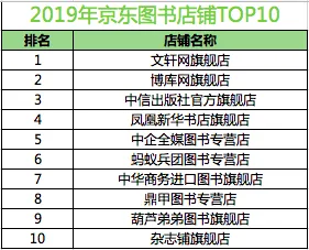 根据京东大数据,在2019年最受欢迎京东图书店铺TOP10中,有老字号的新华书店、行业出版社和优质经销商。位列前两位的文轩网旗舰店和博库网旗舰店都是属于多流量渠道的品牌。