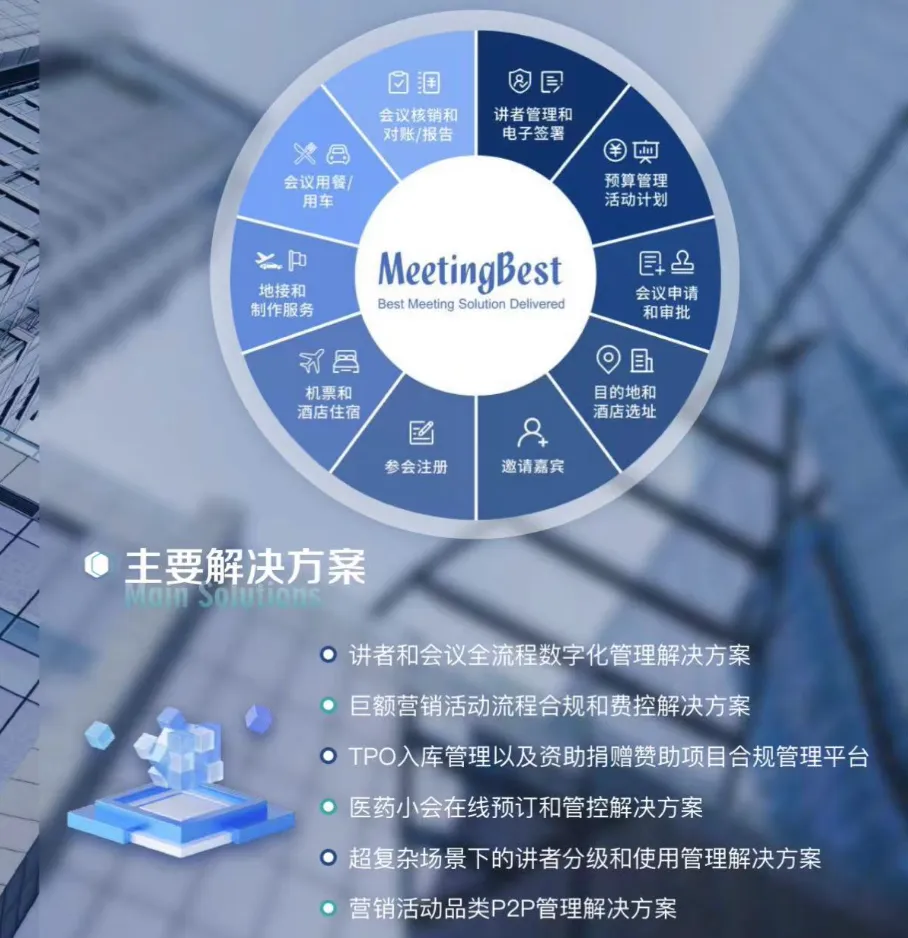 例如我一位师弟创业的数字化营销SaaS,切入的是医药行业会议营销这个垂直市场,面向企业连接企业内营销管理相关核心系统,对外连接会议营销相关的专家、差旅等资源: