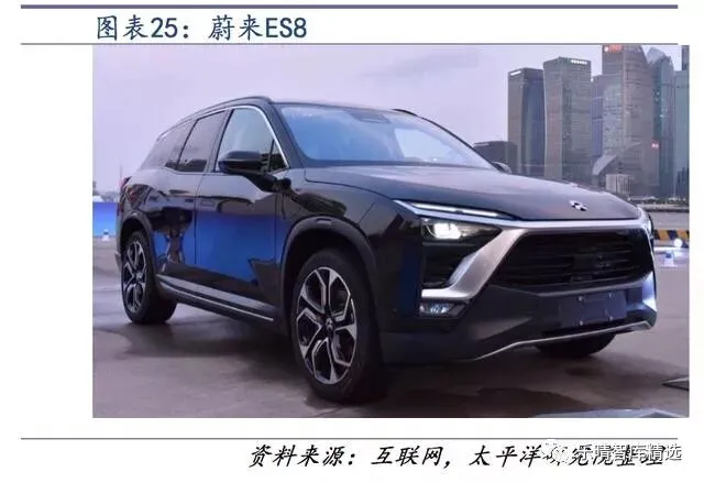 蔚来汽车突围高端。成立于2014年,2017年12月蔚来ES8车型正式上市,到2018年11月27日,ES8第1万辆车下线。ES8是一款中大型SUV,定位中高端市场,工况续航355km,百公里耗电21度,搭载宁德时代配套的三元动力电池,系统能量密度~135Wh/kg,补贴后售价~40万元。另外,蔚来ES6也将于12月份发布。
