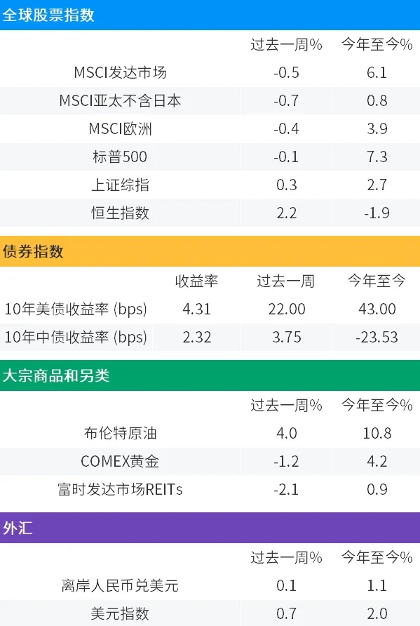 在中国股票大幅反弹的提振下,上周MSCI新兴市场指数一度创下逾一年新高,但周五跟随中概股和港股明显回调。由于美国2月通胀数据继续超预期,市场对美联储启动降息周期的预期仍在摇摆(最新的预期为6月份开始降息,较之前的3、4月份已经后延),加上美元依然保持坚挺,可能使得新兴市场资产一时难以找到稳固的立足点。
