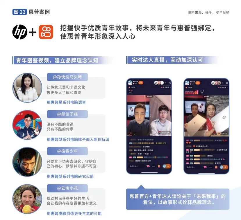 在品牌声量打造方面,以“人+内容”为路径,惠普联合快手打造了一次内容营销。