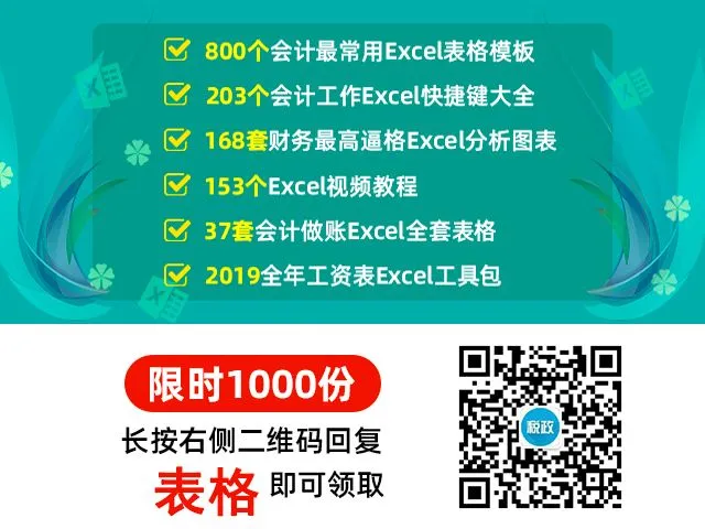 今日前1000名关注,回复【表格】还能免费领取【价值1999元财务Excel大礼包】