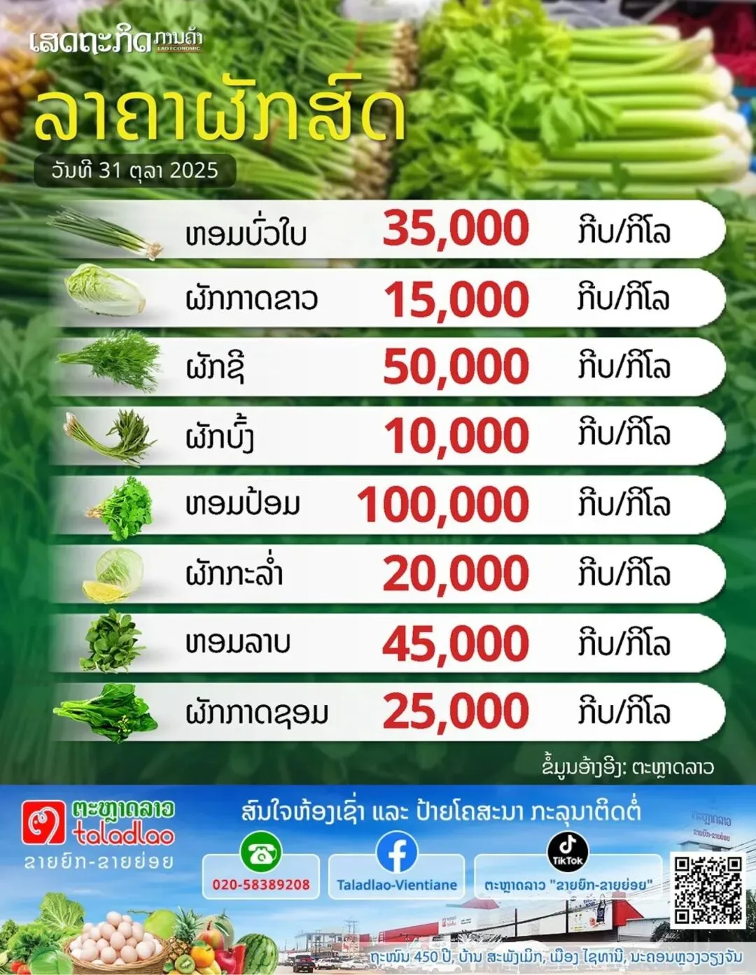香菜100000基普/公斤(约合人民币32.7元)