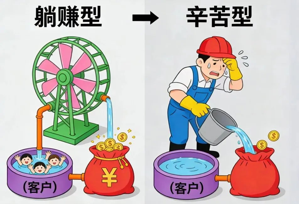 “辛苦型”:干一单,赚一单。比如大部分制造业、工程项目。每笔收入都要付出相应的成本和劳动。