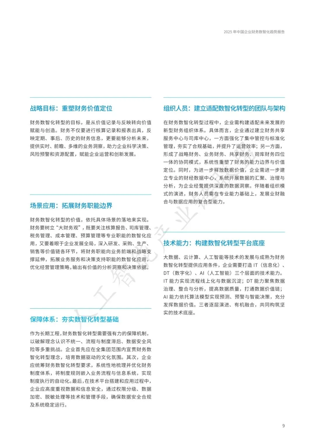 在数据和AI驱动下,财务转型的核心目标正从流程自动化迈向决策智能化,构建前瞻预测、资源优化、风险防控与科学决策的完整能力体系,为企业应对复杂环境、推动创新发展提供坚实支撑。