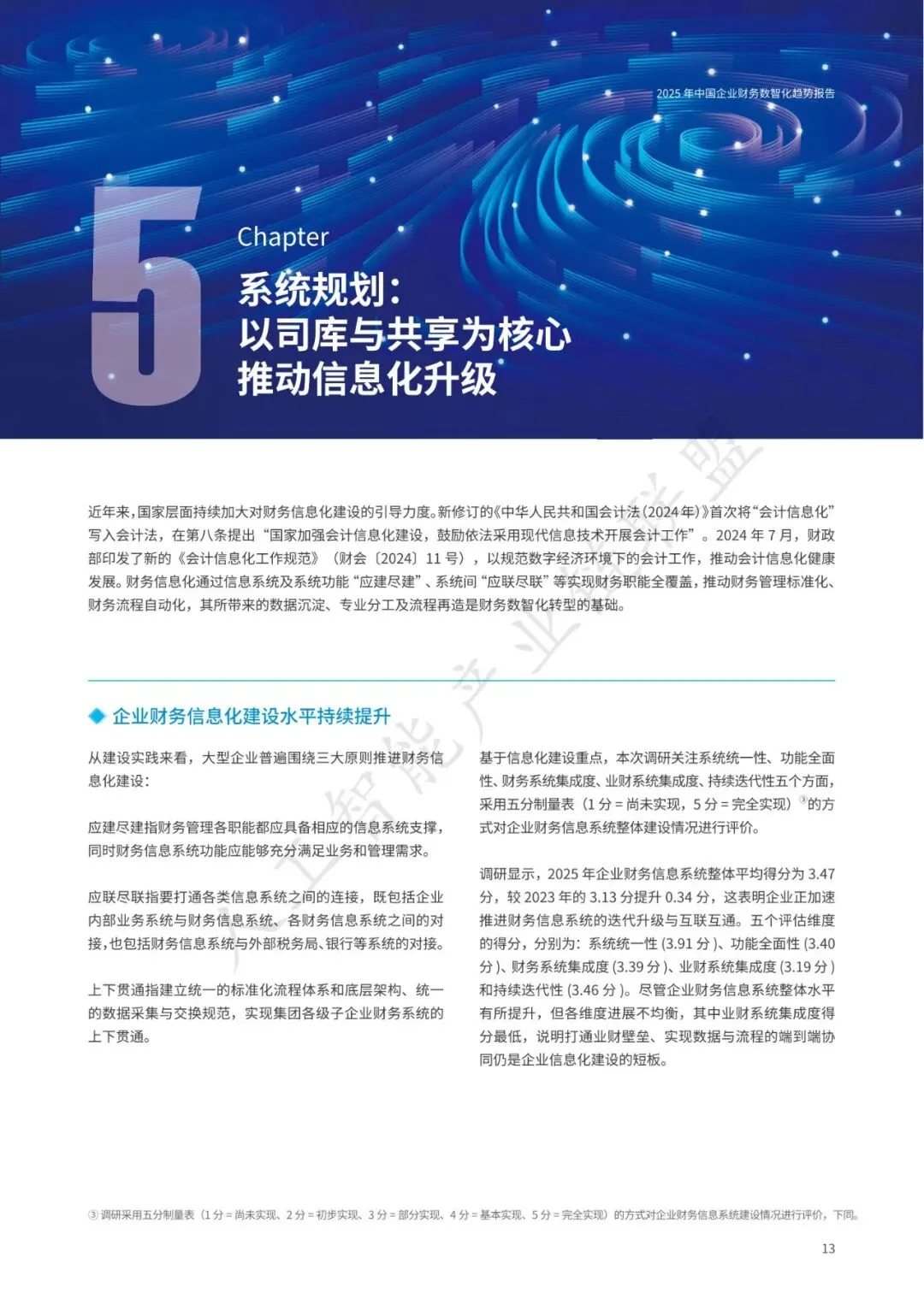 本调研显示,超过80%的企业已明确将财务数智化纳入战略议程,然而战略共识尚未完全转化为系统性的落地能力,在数据治理、业财系统集成、高价值场景拓展以及复合型人才培养等方面,仍存在不足。