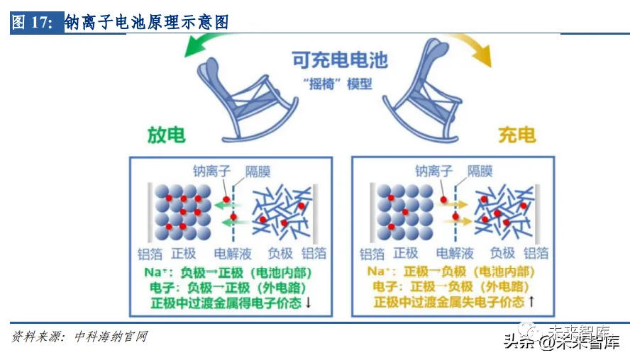 钠离子电池具有理论成本低、特性与锂离子电池相近、安全性好等优点,适 合在对成本要求苛刻的应用场景下替代成本较高的锂离子电池。钠离子电池的正 负极材料所需资源在地壳储量丰富,分布均匀,且开采更加经济环保,被业界认 为是比锂离子电池更具经济性的电池技术。目前钠离子电池技术主要分为三条路线,即层状过渡金属钠离子氧化物、普 鲁士蓝、聚阴离子类钠离子化合物,三条路线均由行业龙头企业布局,均处于实 验室向大规模产业化转化的阶段。目前我国在钠离子电池领域处于世界领先地位,中科海钠、宁德时代、立方 新能源等企业均已实现钠离子电池的初步量产,并推出了成熟的产品线。