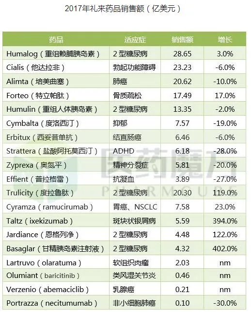目前,礼来最受关注的产品是Trulicity(度拉糖肽),是每周注射1次的长效GLP-1受体激动剂,2017年的销售额是20.3亿美元,已成为礼来业绩增长的最大动力。