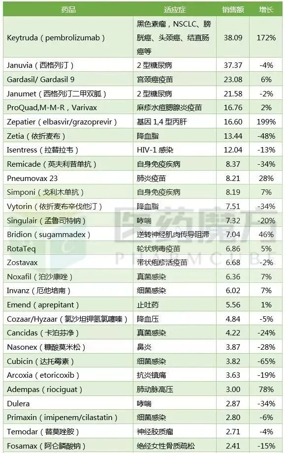 该药物2017年销售额为38.09亿美元,暴增172%。此外,默沙东在疫苗和丙肝领域也举足轻重。