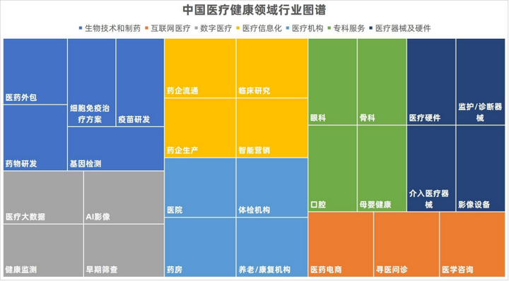 医疗健康行业既包含医院、药房、医疗监管等实体企业,也有医药研发、生物医疗等研发机构,同时还包含医疗信息化及数字医疗领域、医疗与健康行业投资咨询服务等,可以说中国医疗健康行业发展前景是非常广阔的,大健康领域潜藏着8万亿超大体量市场规模。