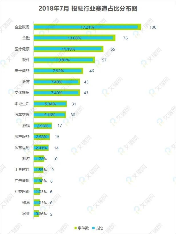 据公开信息统计,2018年7月中国资本市场共计投资事件总数达581件,分别涵盖18个行业赛道,相比上月投资事件率增长24.1%。