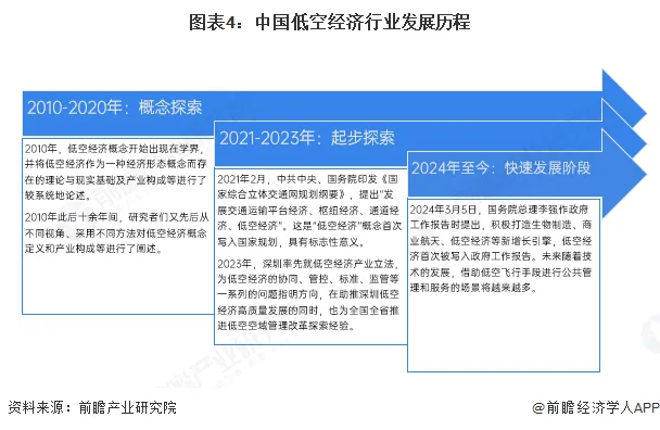 2021年,中共中央、国务院印发《国家综合立体交通网规划纲要》,提出“发展交通运输平台经济、枢纽经济、通道经济、低空经济”。这是“低空经济”概念首次写入国家规划。