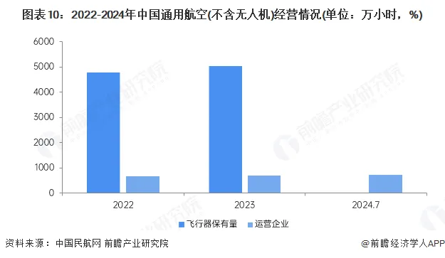 截至2023年底,我国通用航空飞行器(不含无人机)保有量约为5000架,比2022年增长5%。传统通用航空运营企业(不含无人机)690家,比2022年增长4%。截至2024年7月,全国传统通用航空企业达到712家,与2023年底相比净增22家。