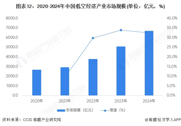 赛迪数据显示,2024年我国低空经济规模预计可达6702.5亿元,其中低空航空器制造和运营服务占比接近55%。随着市场需求的不断增加,低空经济的相关产业链正在快速形成,未来的发展空间广阔。