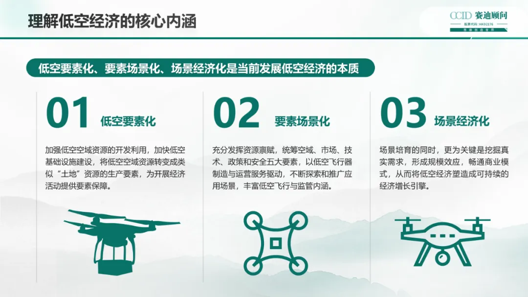 首先,围绕低空经济的概念与内涵做了介绍,从低空基础设施、低空飞行器制造、低空运营服务和低空飞行保障四个环节介绍了低空经济全景图的相关内容。分享了“低空要素化、要素场景化、场景经济化是低空经济发展本质”的观点,并对低空经济发展的三层万亿发展空间做了解读。