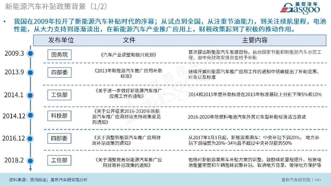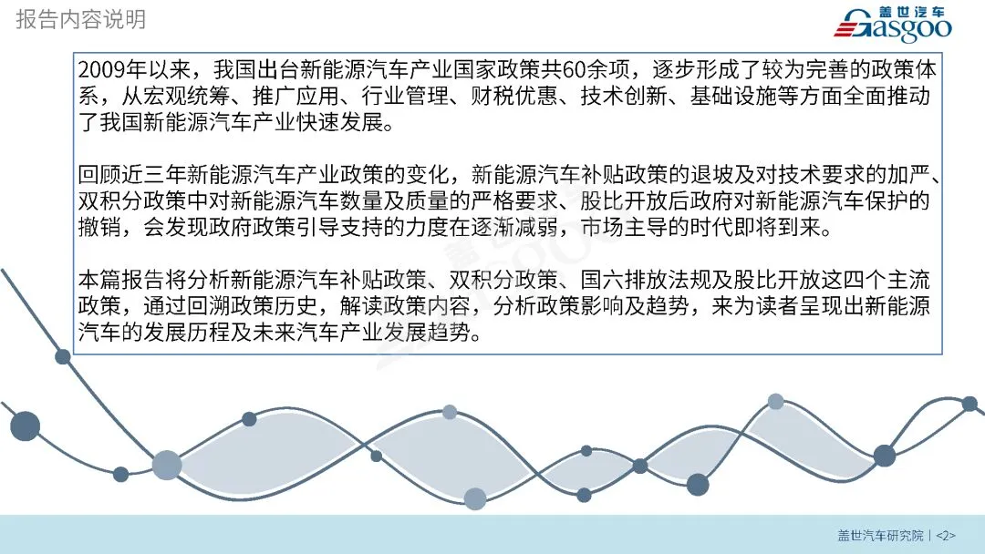 本篇报告将分析新能源汽车补贴政策、双积分政策、国六排放法规及股比开放这四个主流政策,通过回溯政策历史,解读政策内容,分析政策影响及趋势,来为读者呈现出新能源汽车的发展历程及未来汽车产业发展趋势。