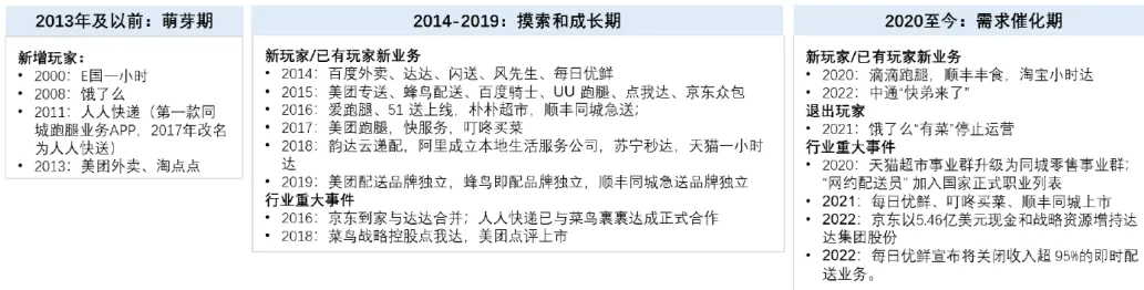 显然,即时零售并不是新鲜概念。早在2000年,E国一小时推出同市购买商品1小时送达服务,就标志这一新业态的落地生根。至今算来也有20多年了。经过多年摸索和成长,现在已经进入需求催化行业爆发的关键时期。