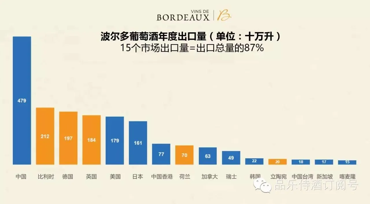 中国市场上,波尔多葡萄酒几乎成为法国葡萄酒的代名词。法国对华出口的带有原产地保护的葡萄酒中,波尔多酒的数量占到了67%,出口额占75%。