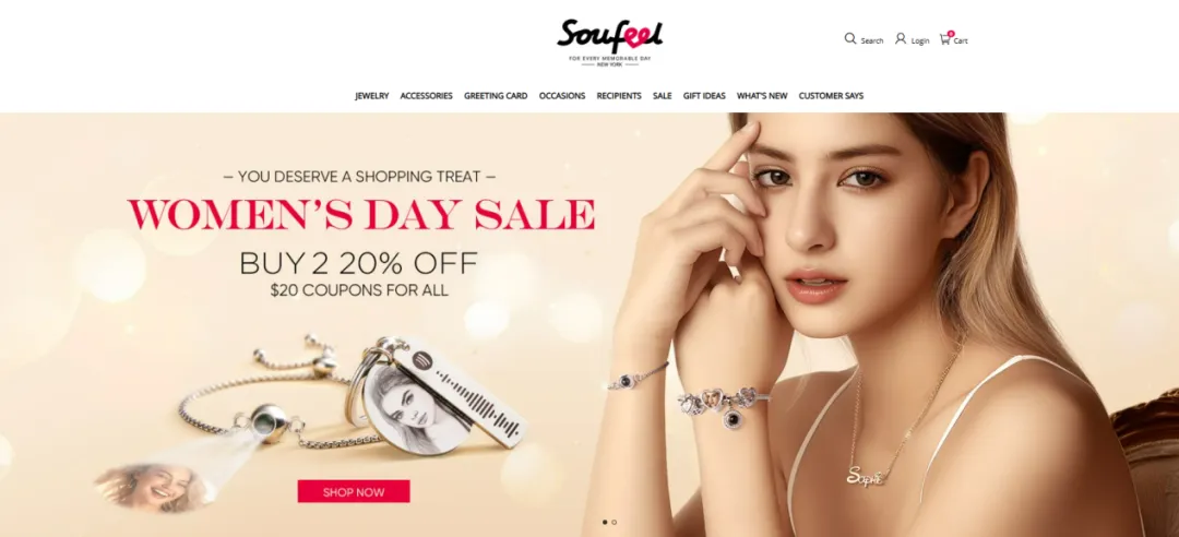“Soufeel”来自于哈尔滨,是较早一批出海的首饰类电商,2011年进入欧洲市场,随后开拓北美市场,不到6个月就实现了百万美元销售额,目前年销售额已稳定在过亿人民币,并在欧美市场的基础上进一步拓展到东南亚,覆盖全球150多个国家的200多万用户。