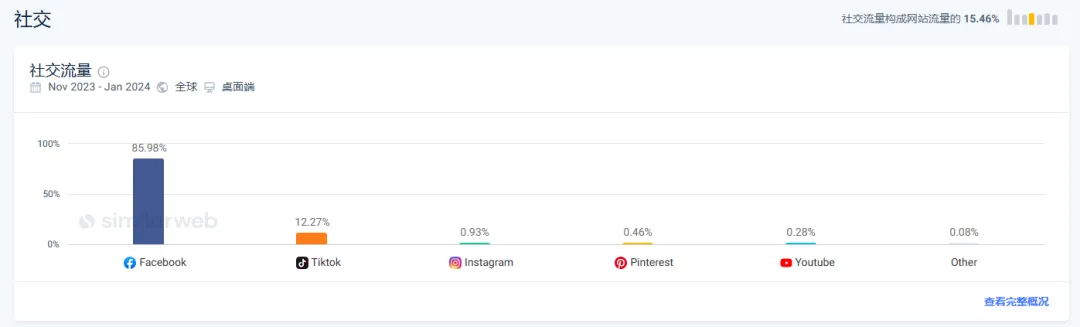 杰莉亚网站的访问渠道来源与“Soufeel”基本一致,超过1/3的访问来源都是直接搜索,付费搜索占到28.27%,社交媒体搜索占比为23.88%。