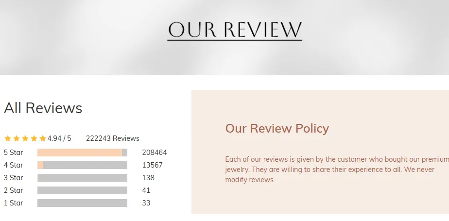 同样地,在杰莉亚官网也有累计超22.2万条评论,其中五星满意好评超过20万条。