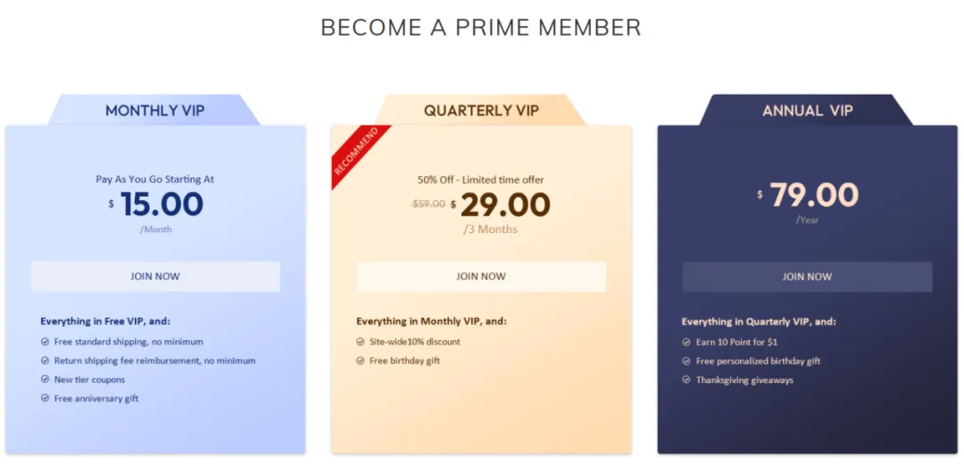 另外,杰莉亚还建立了付费会员制度。针对品牌会员有独特优惠活动,进一步提高客户粘性。如成为会员后的每笔订单均可享受10%的折扣、免费送货、生日福利等。