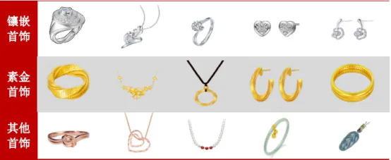 周大生主要营收来源为钻石镶嵌首饰和素金首饰也就是黄金首饰。在2021年以前,公司主打钻石镶嵌业务,营收占比很高,因为这块业务价格高利润自然高,也让周大生明显区别于别的企业的优势。