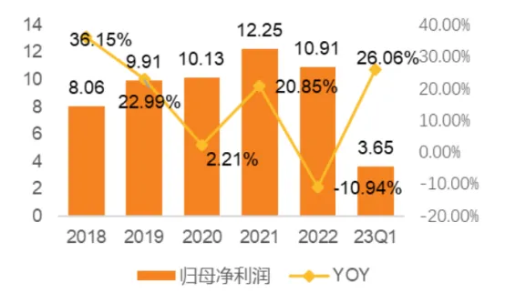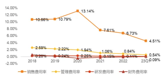 从费用端看,数据显示,2022年公司销售费用率、管理费用率和财务费用率分别为 6.73%、0.84%和-0.12%,继续保持下滑趋势。尤其是销售费用率下滑更加明显,这充分体现公司不错的费用控制管理能力。