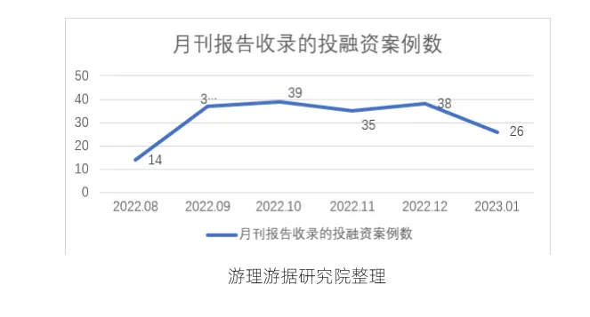 2、投融资领域仍不活跃,海外并购热度渐冷。2023年1月游戏行业观察报告收录的案例数量出现明显下滑,且腾讯首月缺席海外并购。