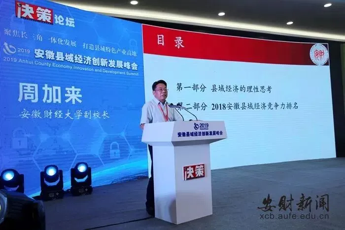 校党委常委、副校长周加来出席旌德发布会,并作了题为“县域经济的理性思考与竞争力评价”主题发言。他从县域经济的理性思考出发,指出当前我国已从城乡统筹发展进入到了城乡融合的新阶段,县域经济作为宏观经济中的微观经济和微观经济中的宏观经济,其发展壮大的目的是为了实现乡村振兴战略,实现城乡融合的最终目标。周加来结合最新发布的2018年安徽省县域经济竞争力排名深度分析,认为经济发展应是统领县域经济的“牛鼻子”,是县域竞争力评价的风向标。周加来强调发展县域经济要围绕当地特色产业、打造特色产业链、推进特色产业集群建设,走出一条人无我有、人有我优、人优我特的特色产业之路,最终实现城乡一体化的宏伟发展目标。