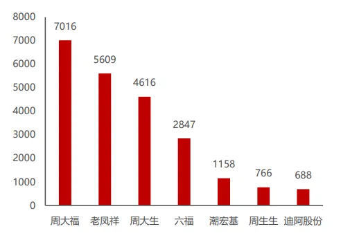 周大生其实大家并不陌生,主要从事珠宝和黄金的连锁销售,目前拥有5000家门店左右,仅次于周大福和老凤祥。
