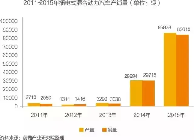 据不完全统计,2014年插电式混合动力汽车产销分别完成29894辆和29715辆;2015年插电式混合动力汽车产销分别完成85838辆和83610辆,比上年分别增长1.87倍和1.81倍。总体来看,混合动力汽车在我国的市场表现在2015年十分亮眼。