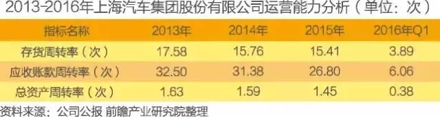 2016年一季度,公司的存货周转率为3.89次;应收账款周转率为6.06次;总资产周转率为0.38次。