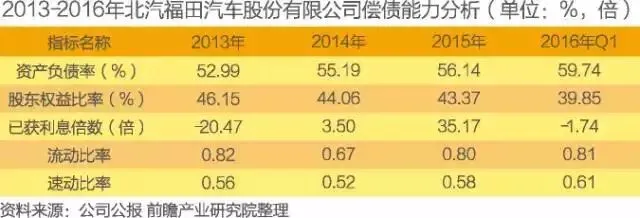 2016年一季度,公司资产负债率为59.74%;股东权益比为39.85%;已获利息倍数为-1.74倍;流动比率和速动比率分别为0.81和0.61。