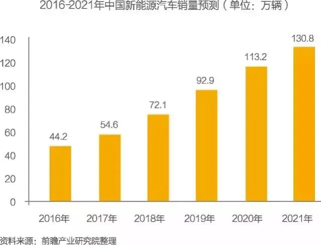但从我国新能源汽车的销售情况来看,与2020年的销售目标还有较大的差距。2008-2015年,我国新能源汽车销量占汽车销量的比重逐年提升,2015年达到了1.3%。前瞻分析预测,到2021年,我国新能源汽车销量占汽车销量的比重将会在3.8%左右,销量约为130.8万辆。