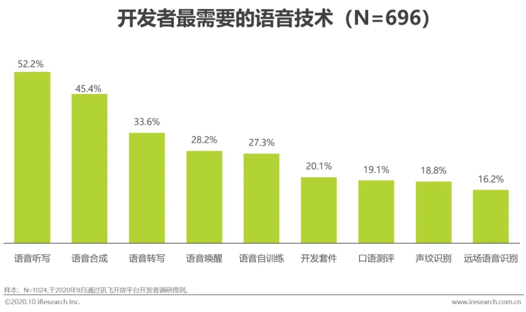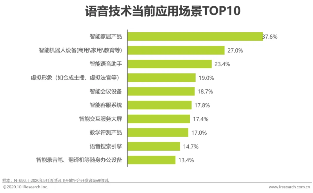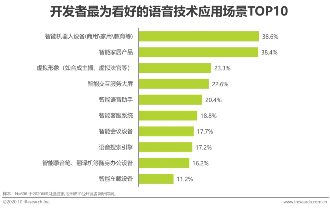 语音技术目前在智能家居产品、智能机器人设备、智能语音助手、虚拟形象、智能会议设备等场景中应用广泛且被开发者持续看好。未来语音技术在智能机器人设备中的应用成为开发者最为看好的场景,此外,开发者也认为语音技术在智能交互服务大屏场景中的应用将有较大幅度提升,AI开放平台亦可针对性的开放该场景下更优质的语音技术。