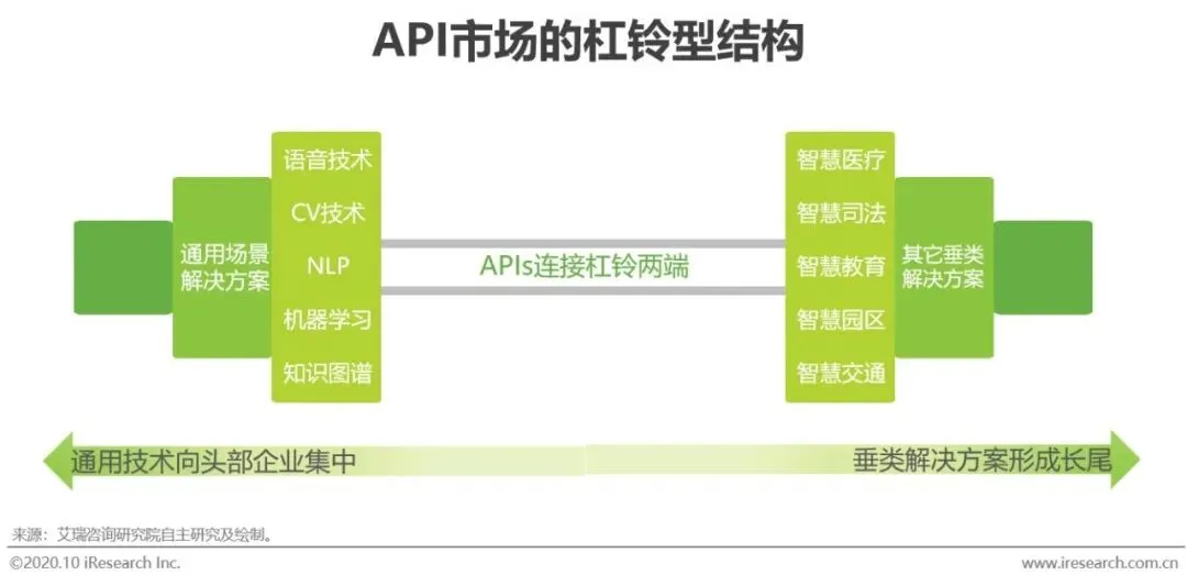 通用类技术向头部企业集中,垂类解决方案形成长尾,API为连接桥梁